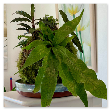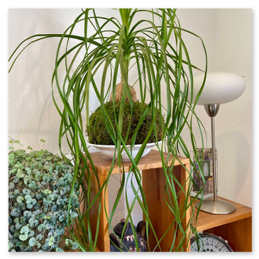 Hell bis halbschattig, keine direkte Mittagssonne. Zugluft vermeiden. Hängende Kokedamas regelmäßig leicht drehen, damit die Pflanze gleichmäßig wächst.