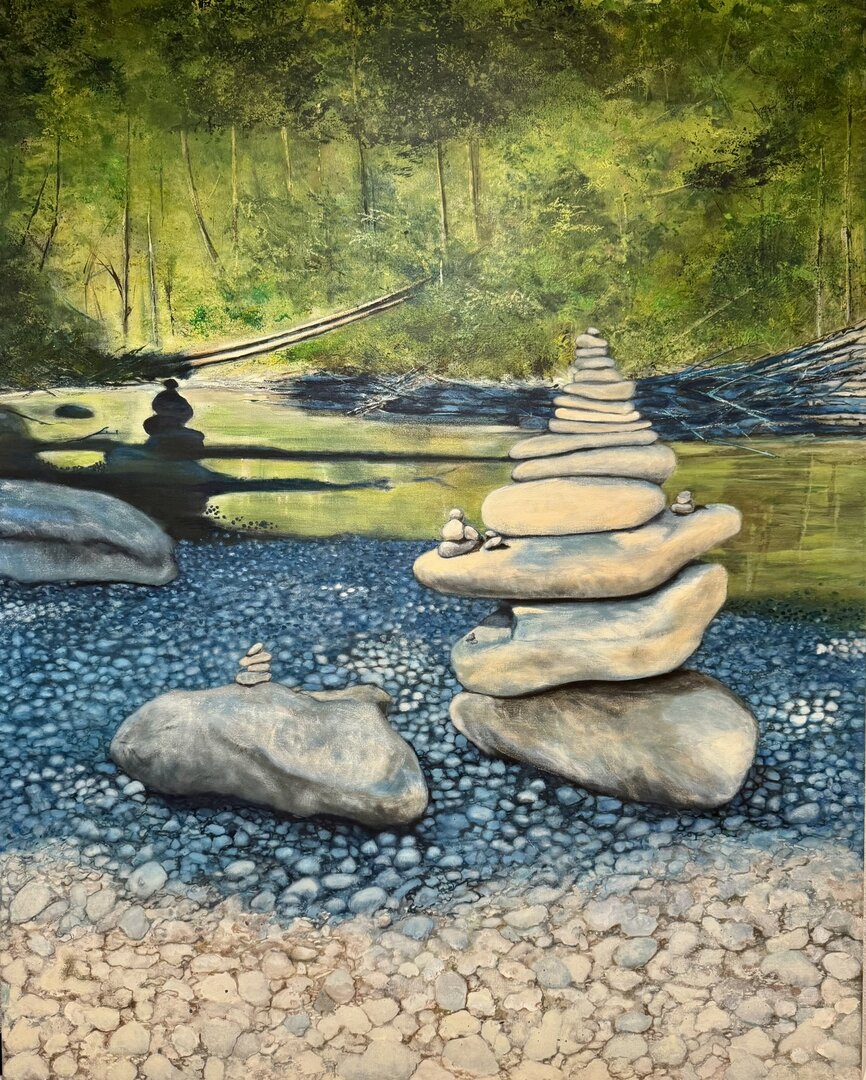 Hier findest du eine Auswahl aktueller Arbeiten. Die Motive reichen von Farbfeldern über Landschaftsabstraktionen bis zu expressiven Collagen. Notizen zu Serie und Technik stehen in den Bildunterschriften.